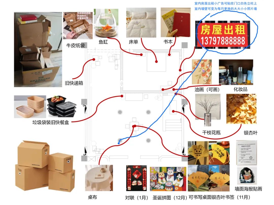 崔译文与贺静贤作为第二组受邀者,要以“秋”的主题展开创作,对于从未参与过当代艺术展览项目的“90后组合”来说,如何将自己作为设计师的身份融入到这次展览中成为了一个挑战。她们通过与王友身及鸭绿江美术馆进行多次沟通交流后,逐渐明确了以“家”为核心理念的方向。对这个别墅空间交给她们为期90天的使用权理解为“具有临时性与快闪的家”。