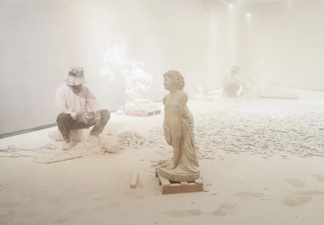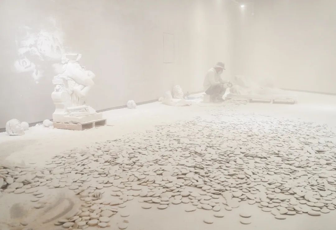 当弥漫在展厅里的石粉尘埃落定,这些大理石石片在一年展期内会被观众带走,投向鸭绿江,潮白河,维多利亚港,东京湾打出一串串涟漪……