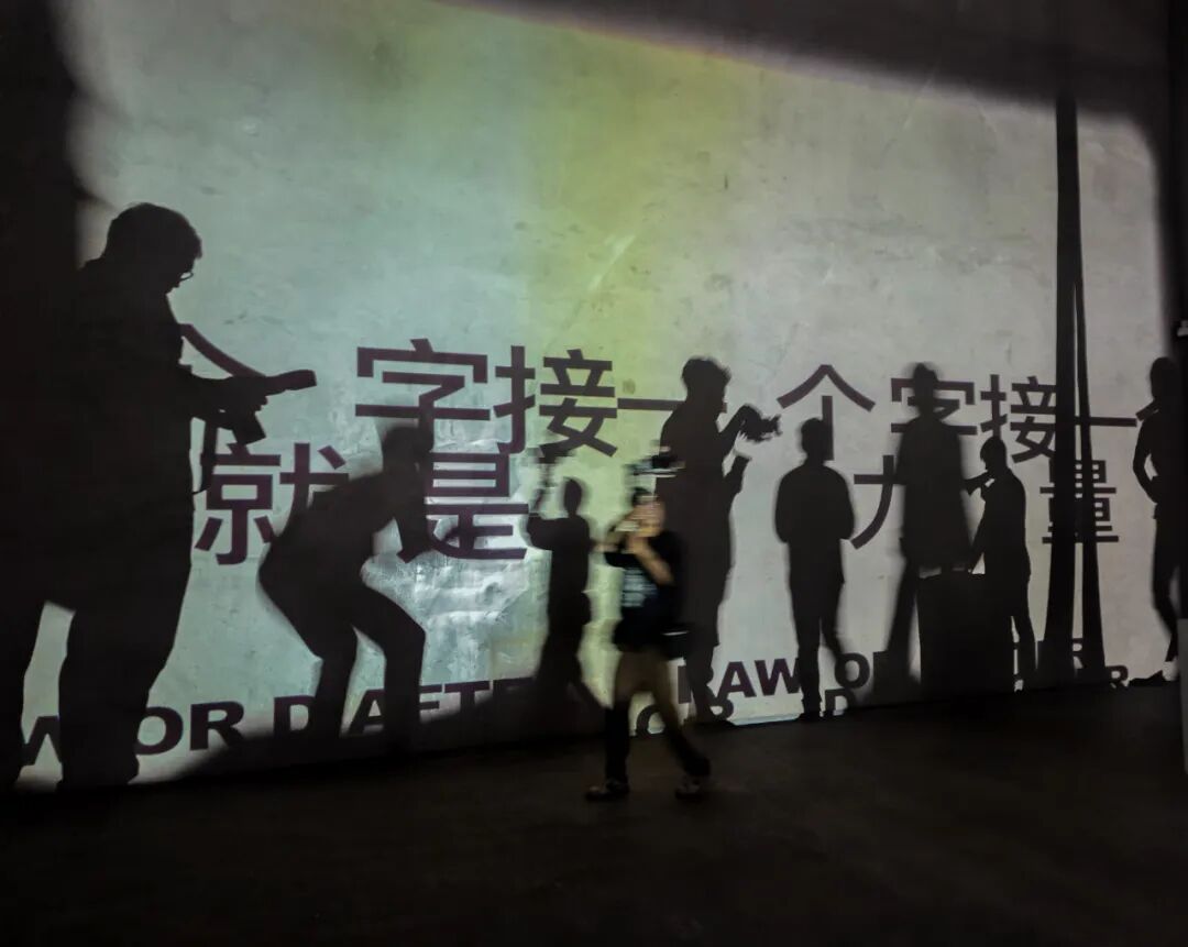 2025年,香港艺术家曾建华的《一 口 長 勹》(‘一句长句’)正是这一“时间可能性”理念的具体体现。艺术家在352天内,每日精选一句非原创的社会性文本/句子(涵盖广告、标语、文学、新闻、评论、说明书等广泛领域,敏感内容除外)。这些句子是存在于社会现实中的“现成品”,其选择本身即构成了艺术家的观念。逐日累积而成的“长句”摒弃标点符号,将对意义的解读(断句)权力完全交予观众(此时的观众也是读者)。曾建华的身份在此模糊于“艺术家”与“收集者/编纂者”之间,其作品是在美术馆空间内历时生成的“社会写作”档案。它并非来自封闭的美术馆“方盒子”思维,而是基于庞杂的社会综合思维与价值判断。通过“每日一句”的仪式化过程直接引入美术馆的物理空间(墙面与投影),观众(读者)直面未经艺术“过滤”的现实切片及其因聚合产生的复杂歧义。