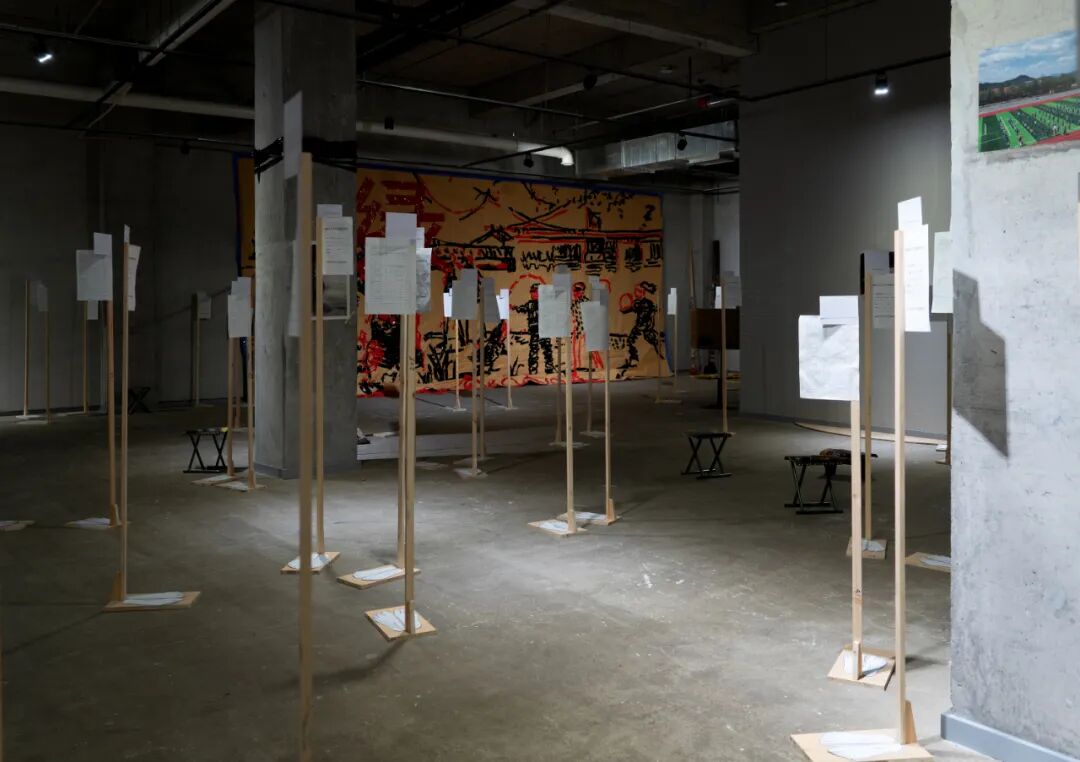 鸭绿江美术馆文献展旨在构建一种反常规的,具有“文献”属性的展览结构。其核心机制在于解构展览的独立性与自洽性:上一个展览尚未落幕,下一个展览的策展理念与作品不经协商便强势介入,以此形成无数展览在时空上叠加、碰撞、互渗的“有始无终展览”状态。这种 “非自洽”的展览结构,旨在制造自我颠覆的策展逻辑,以及创作方法论之间的各种遭遇。激化其中的矛盾与冲突,并将策展人、艺术家在“遭遇”语境中采取的态度和应对方法论本身作为展览的核心内容予以呈现。