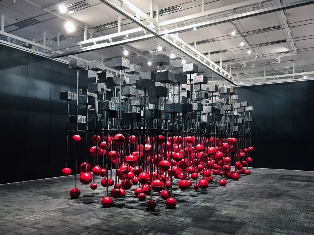 "Sharks and Humans" exhibition, Wang Luyan: "Being downward to the Upper body", material: floating ordinary rigid size: 370×258×8340cm
